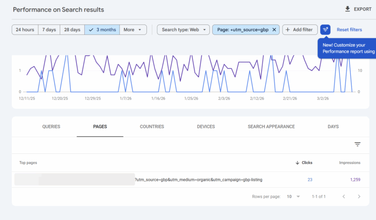 Because you’ve now tagged your links, you can also see how your URLs are surfacing in Google Business Profile too.